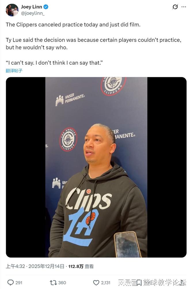 北京时间12月14日,快船本来安排了一堂训练课,但训练临时取消,变成了录像课。主教练泰伦卢接受采访时说:“有几个球员无法参加训练,但我不能说他们是谁,我觉得我也不该说。”球迷反而更好奇了:为啥不能说呢?